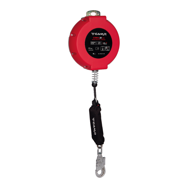 L'antichute à rappel automatique Cobra 20m V+H de chez Camp est idéal pour le travail en hauteur et les interventions sur des surfaces inclinées. Son câble en acier galvanisé de 20 mètres permet de se déplacer facilement, que ce soit en utilisation verticale ou horizontale grâce à l’absorbeur d’énergie externe.