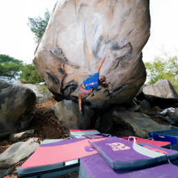 Pour compléter sa zone de réception, on peut ajouter un Airlight crash pad Beal pour élargir la surface, ou placer un Addition Pad Beal sur les zones plus exposées. Ça permet d’adapter son installation en fonction du bloc et de grimper plus sereinement.