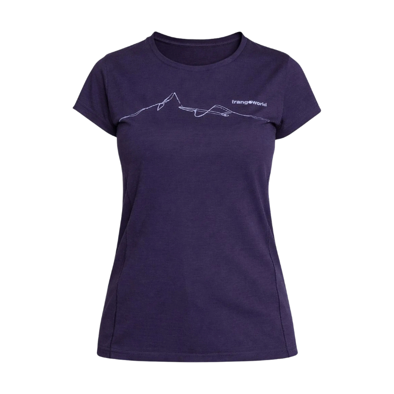 La coupe est simple et fonctionnelle avec un col rond, des manches montées et des coutures Merrow qui renforcent la durabilité du vêtement. La sérigraphie Trangoworld apporte une touche visuelle discrète sans gêner l’utilisation du t-shirt technique outdoor.
