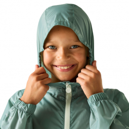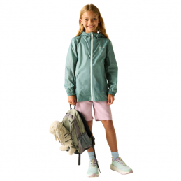 La veste technique imperméable Pack It pour enfant de chez Regatta protège efficacement votre enfant par temps de pluie.