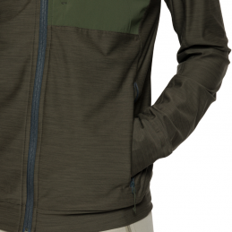 Le tissu principal est en polyester élastique, ce qui rend la veste confortable à porter toute la journée. Les empiècements contrastés utilisent un polyamide recyclé avec la technologie Free4move, une construction bi-élastique qui favorise la liberté de mouvement. Ce mélange de matières donne une veste polyvalente qui fonctionne aussi bien pour la marche, les déplacements quotidiens ou les activités légères en extérieur.